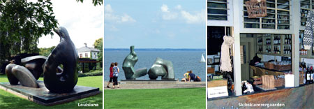 ![]() Louisiana Et af verdens mest attraktive museer for moderne kunst ligger i Humlebæk, syd for Helsingør. Museet viser store, internationale udstillinger. Museets egne samlinger omfatter værker af berømte kunstnere som Picasso, Mirò, Moore, Giacometti etc. Også de fornemste forgængere for dansk kunst er repræsenteret. Fra den omgivende smukke park, museets café og restaurant har man en fantastisk udsigt over Øresund. Skibsklarerergaarden Gammel købmandsgård fra Øresundstoldens tid. Et velbevaret købmandslokale med snaps, krydderier, cigarer og meget mere. Der er også mulighed for at smage gårdens hjemmebryggede øl "Bryg no.1". Flynderupgaard Museet Et interessant museum med egnens landbrug, dyr og fiskeri. En fin gammel købmandsbutik og et tidstypisk fiskerhjem gør historien levende, ligesom de rustikke retter mad, som serveres i "Folkestuen". |